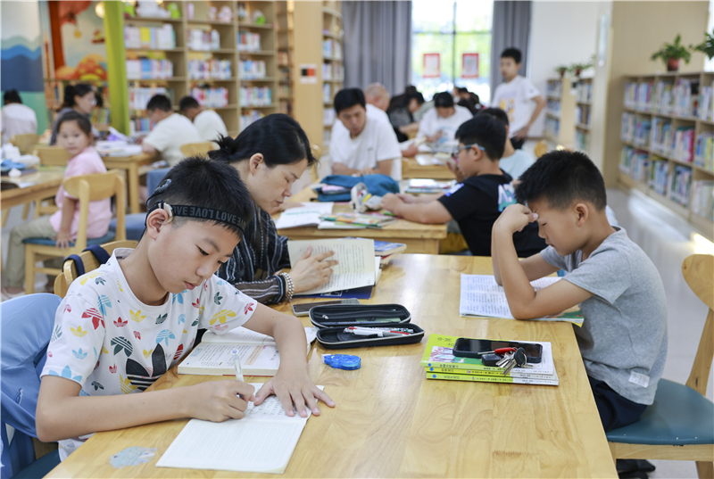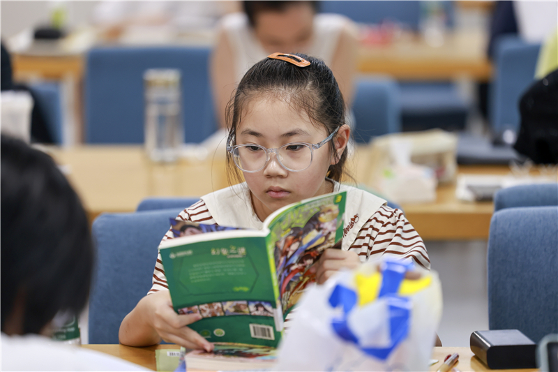 今年暑期,泰州市图书馆成为“充电”好去处。众多市民在图书馆里或潜心阅读,或专注研学,学习氛围浓厚。(顾继红)